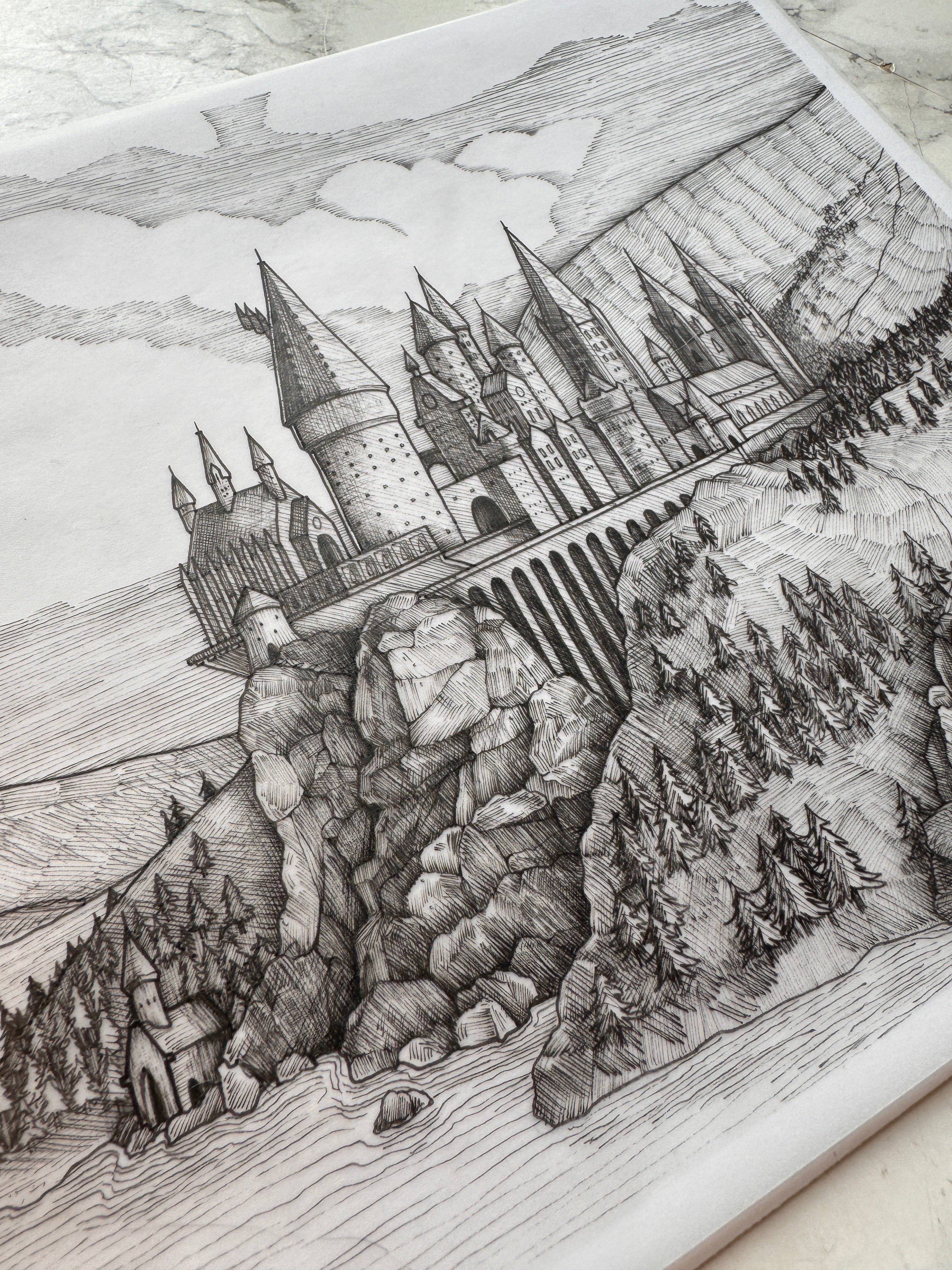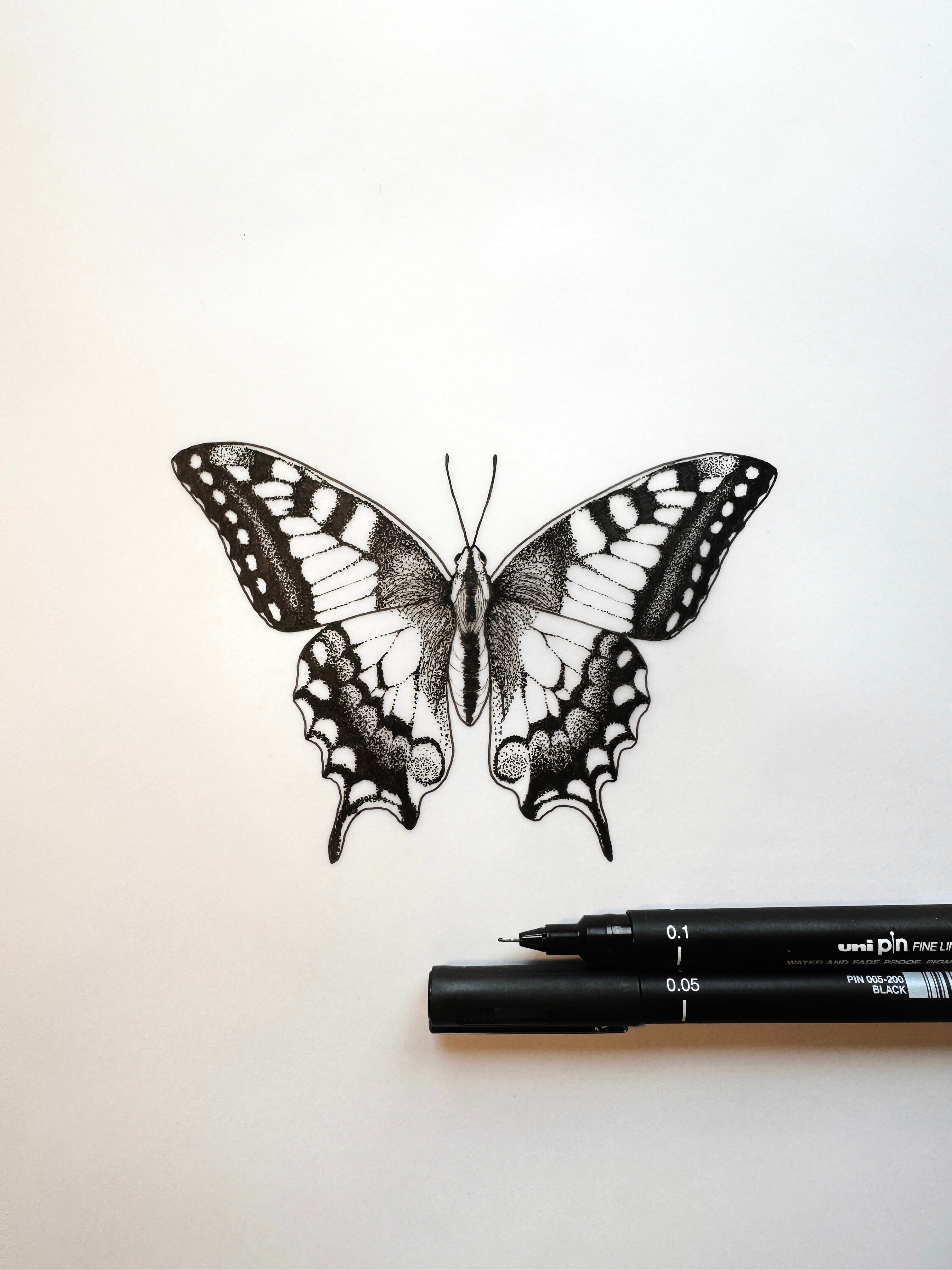 Gefertigt mit Farbstiften, Tusche und Feder, Finelinern oder einer Mischtechnik aus diversen Kunstmaterialien